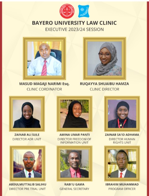 The Bayero University Law Clinic is headed by a Director General (Clinic Head). The Clinic has four (4) departments namely; Human Right Department, Pre-trial Detention Department, Freedom of Information Department and Alternative Dispute Resolution Department, which is headed by a Deputy Director.