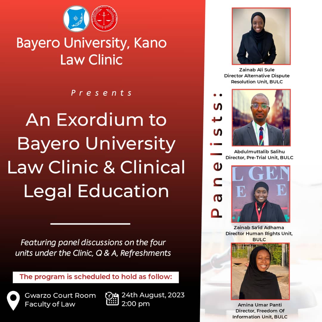 5. Assisting and providing pro-bono legal services to indigent persons who are awaiting trial at various correctional centres and other detention centres and other humanitarian services which may be necessary to promote the reputable image of the Bayero University Law Clinic (BULC) towards ensuring a just and peaceful society.
